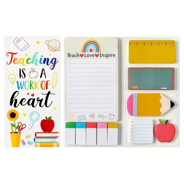 Teacher Appreciation Sticky Notes Set, Patterned Sticky Notepads, Teaching Is A Work Of Heart Gifts, Writing & Reminder Notes, Classroom Stationery Gift