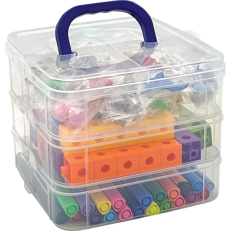 - These clear storage containers are the perfect organizational tool for the home or classroom. Use them for storing and organizing manipulatives, crafts, classroom supplies, and more! Lid has a built-in handle.