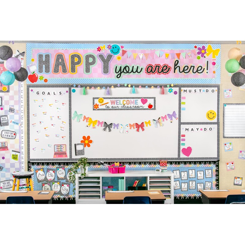 • Create the perfect look for your classroom with this Pink Checkers design.