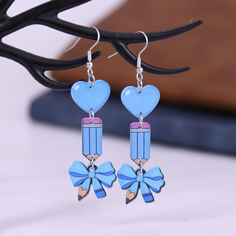 - Teacher Earrings:Fun pencil, heart, and book drop dangle design, perfect for back to school, graduation, and Teacher's Day gifts, ideal for colorful students and teacher appreciation