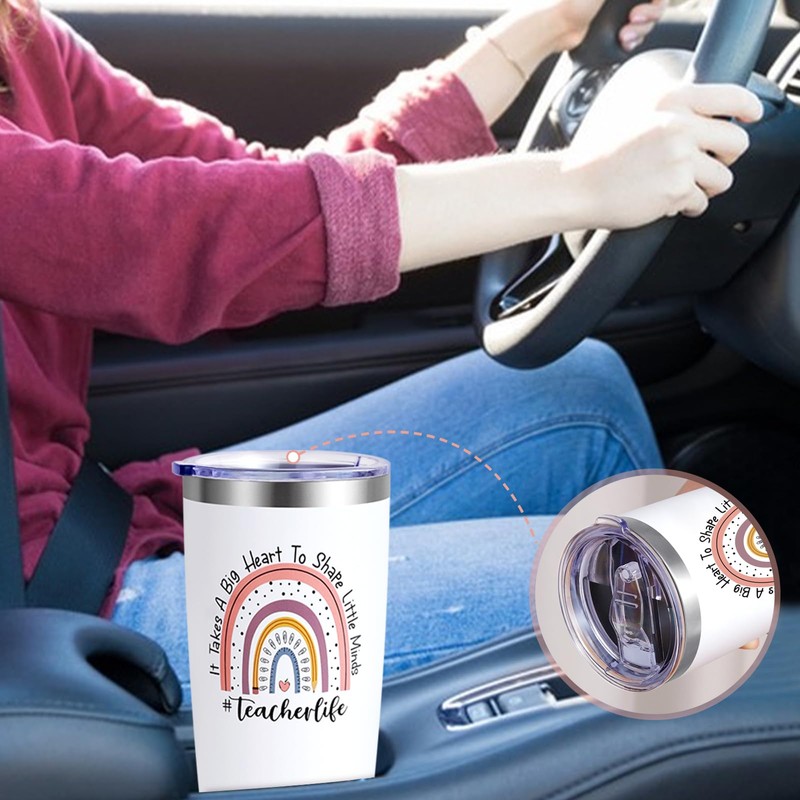 - đăPortable Travel TumblerăFits in most cup holders, our 20 oz Stainless Steel teacher coffee mug and teacher bracelets for women is perfect for any occasion such as going out for coffee/tea, work, gym, party, running, camping, riding, fishing or any daily activities.