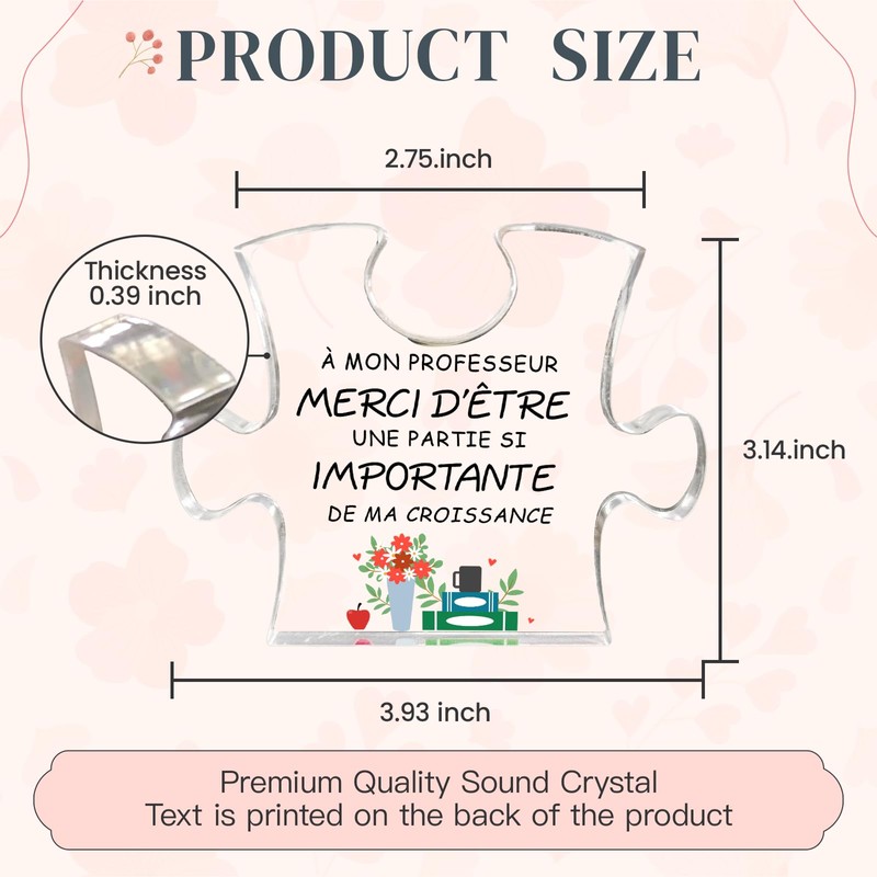 Teacher Gifts French from Students, Acrylic Puzzle Table Sign, Teacher Appreciation Gifts for Women Men, Teacher Senior Graduation Gifts for Thank You Teachers