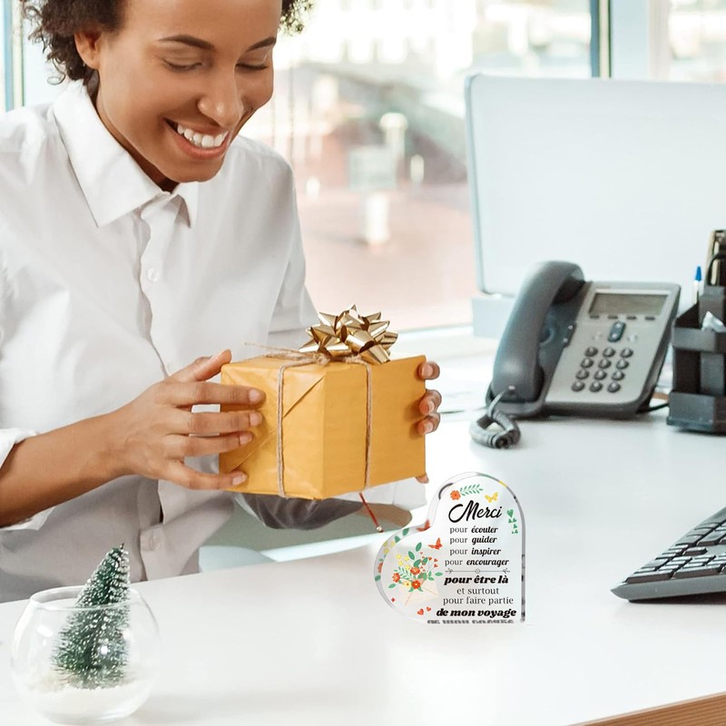 Teacher Gifts Heart‑Shaped Acrylic Plaque – French Thank You Keepsake, Acrylic Desk Décor for Teacher Appreciation, End‑of‑Year Staff Appreciation, Thank You Gifts for Women & Coworkers