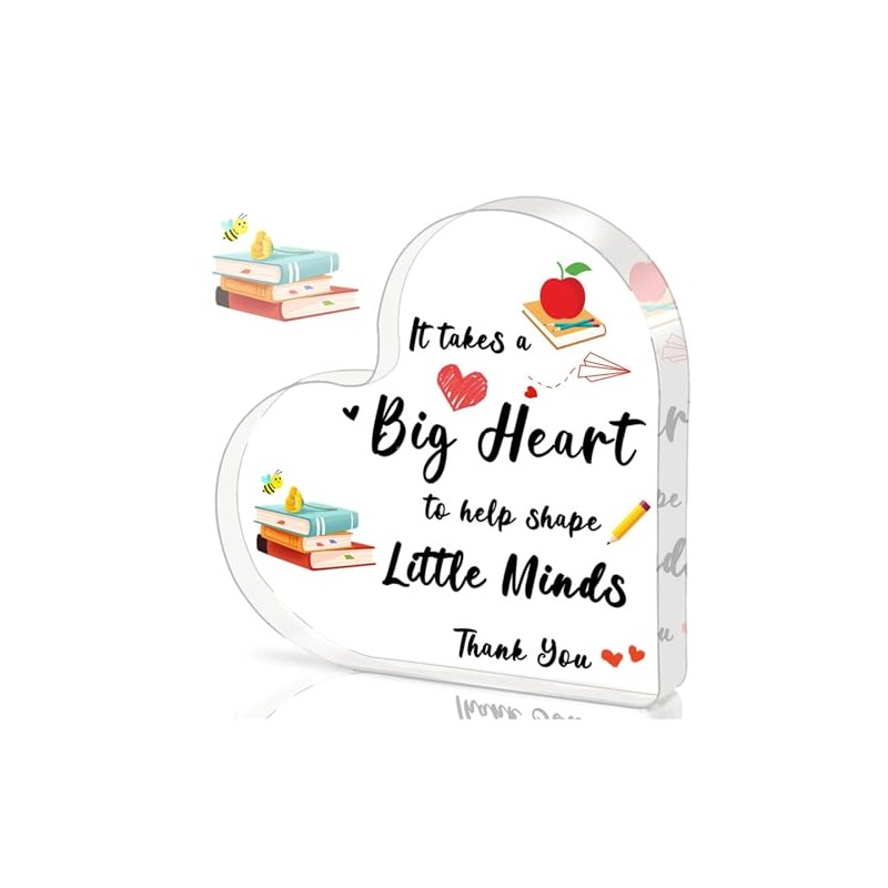 Teachers Gift for Women Men, Students Thanks Teacher'S Day Gift, Heart-Shaped Acrylic Plaque, Christmas Teacher Leave Gift