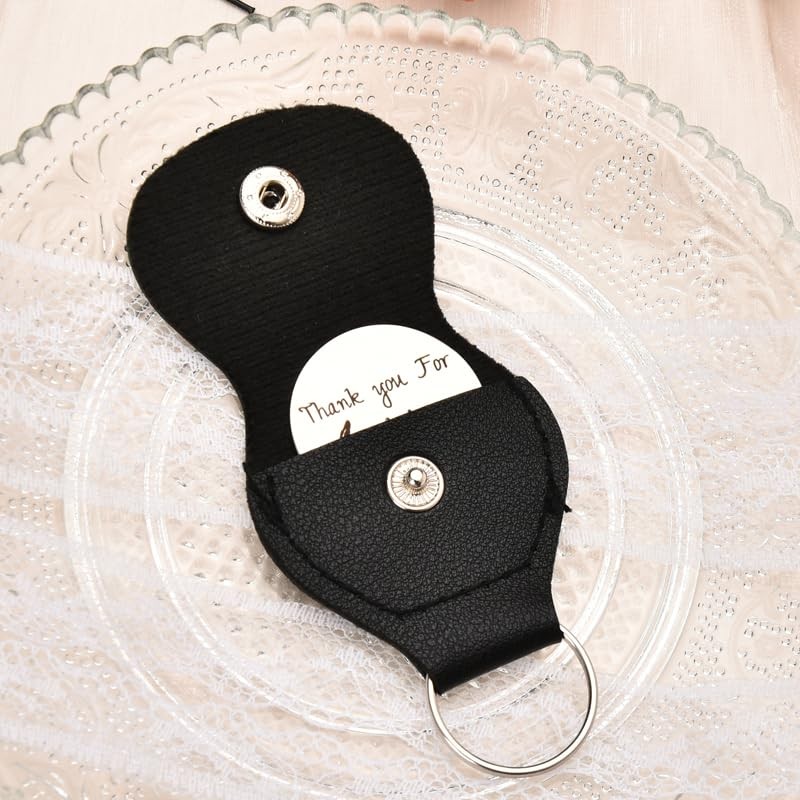 double sided engarved stainless steel appreciation thank you gift with pu leather keychain