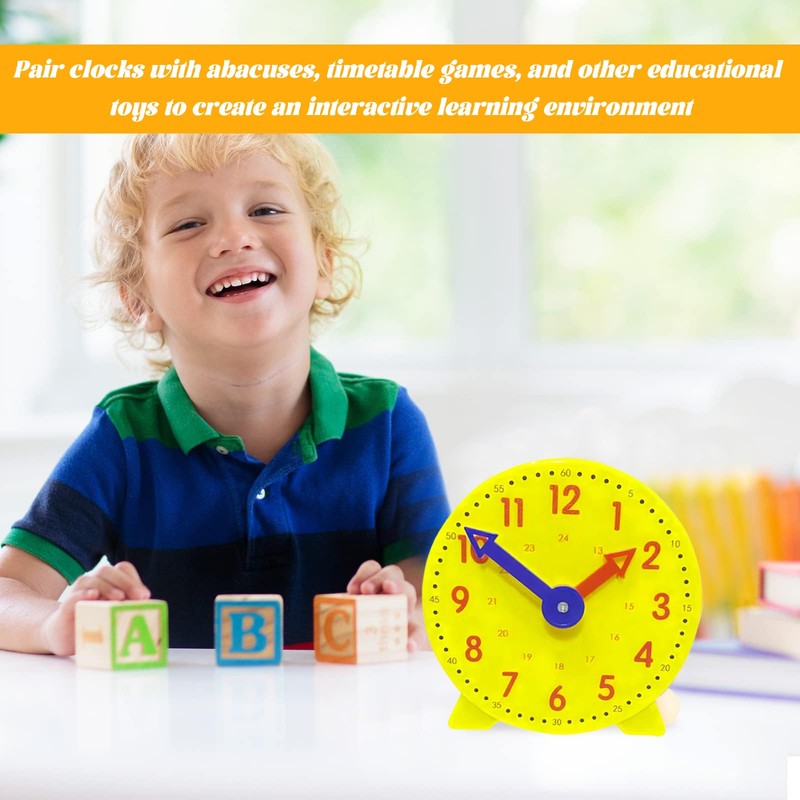 Teaching Clocks for Children Yellow Kids Clock learn to tell the time clock 24-Hour Time Teaching & Demonstration Clock Telling The Time Clock for Kids Diameter 10cm for Ages 4+,toddler clock