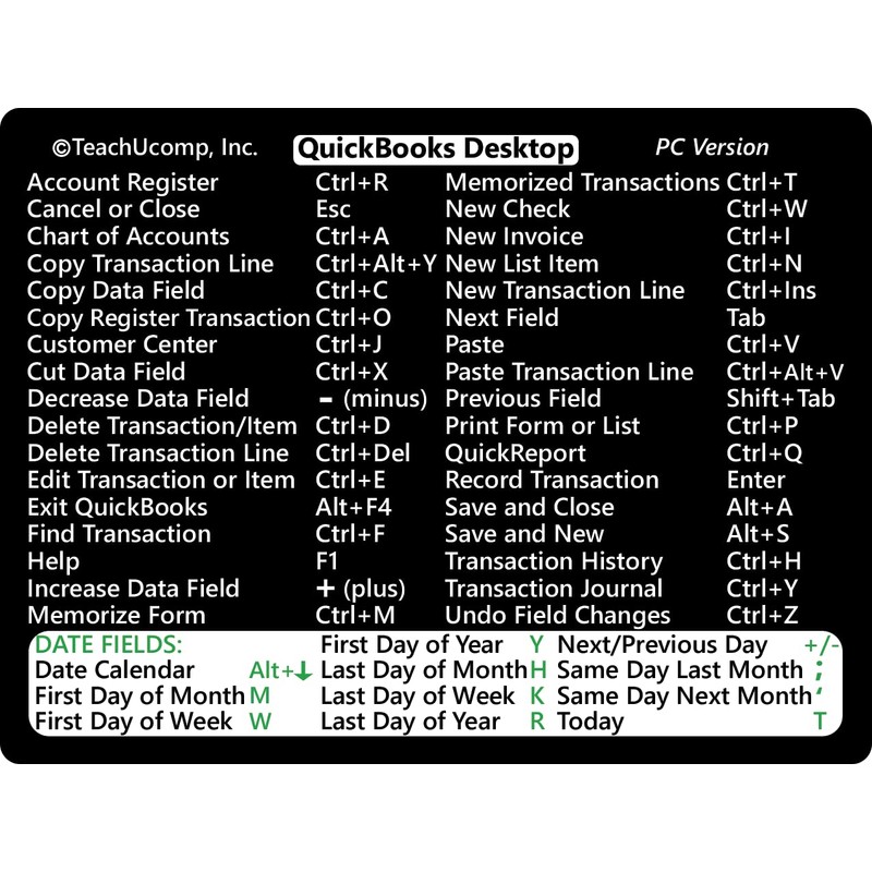 TEACHUCOMP Keyboard Shortcuts Sticker for Intuit QuickBooks Desktop (Pro/Prem...