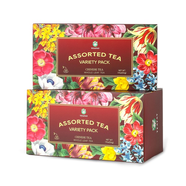 TEAFAY Assorted Tea Sampler Box, 18 Pyramid Tea Bags (Pack of 1) for 36 Cups, Whole Leaf Tea, Rich and Flavorful Experience