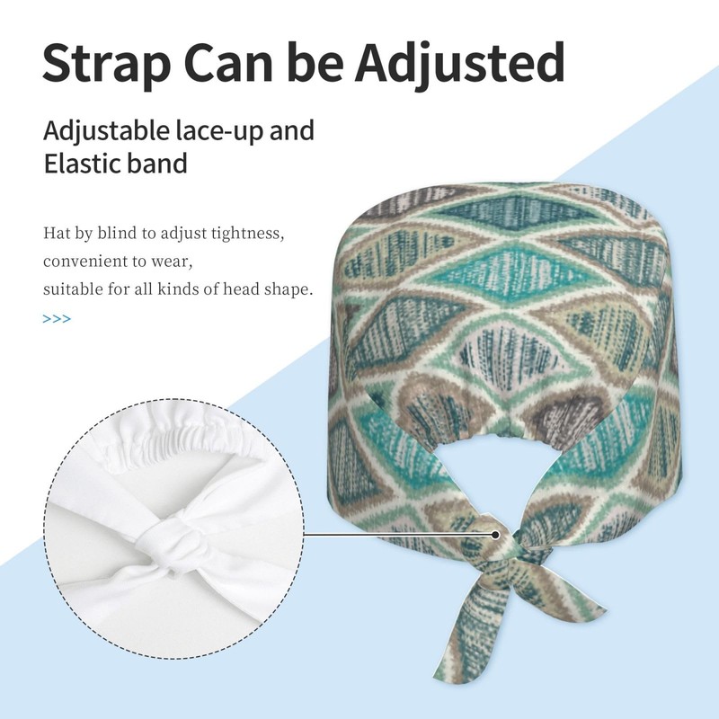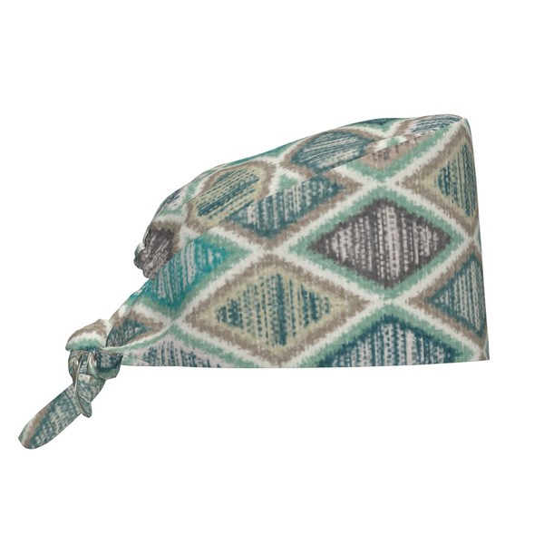 Teal and Brown Boho Style Unisex Adjustable Surgical Sweatband - Elastic Bandage Cap - Scrub Caps for Nurse Working Cap