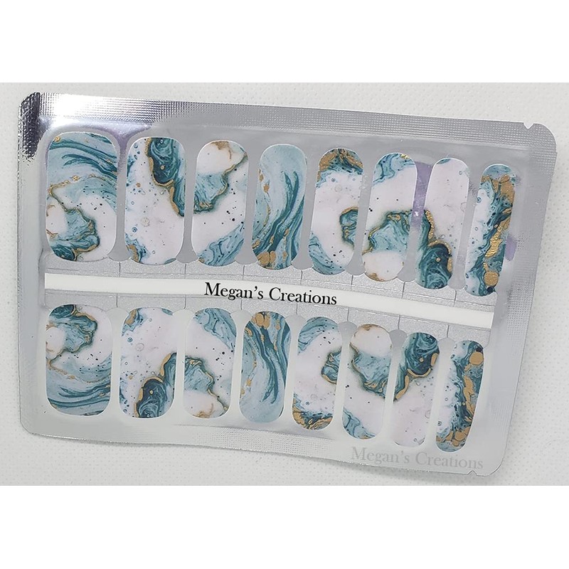 Teal Green Gold Marble Nail Polish Wraps - Nail Polish Strips