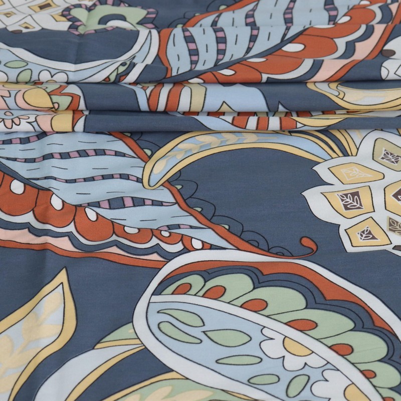 Teal Queen Flat Sheets Only 100 Percent Cotton Paisley Pattern Bed Sheets Ultra Soft Breathable Top Sheets