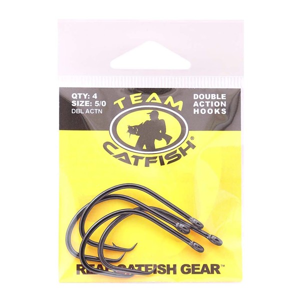 Team Catfish Double Action 5/0 Circle Hooks (4 Pack) Wide Gap and Needle Sharp Point