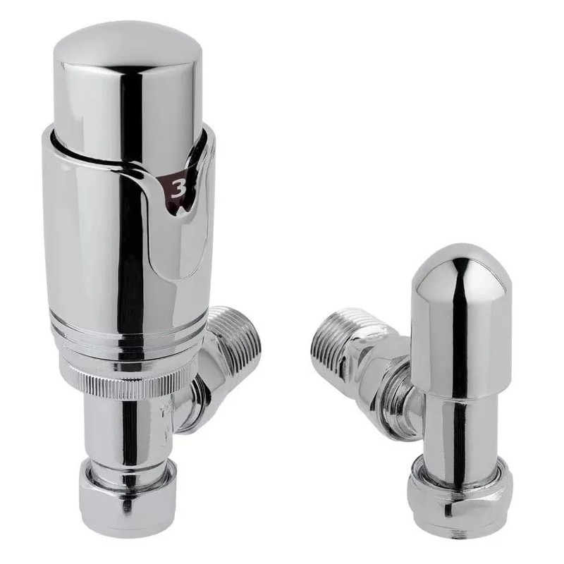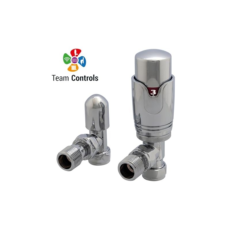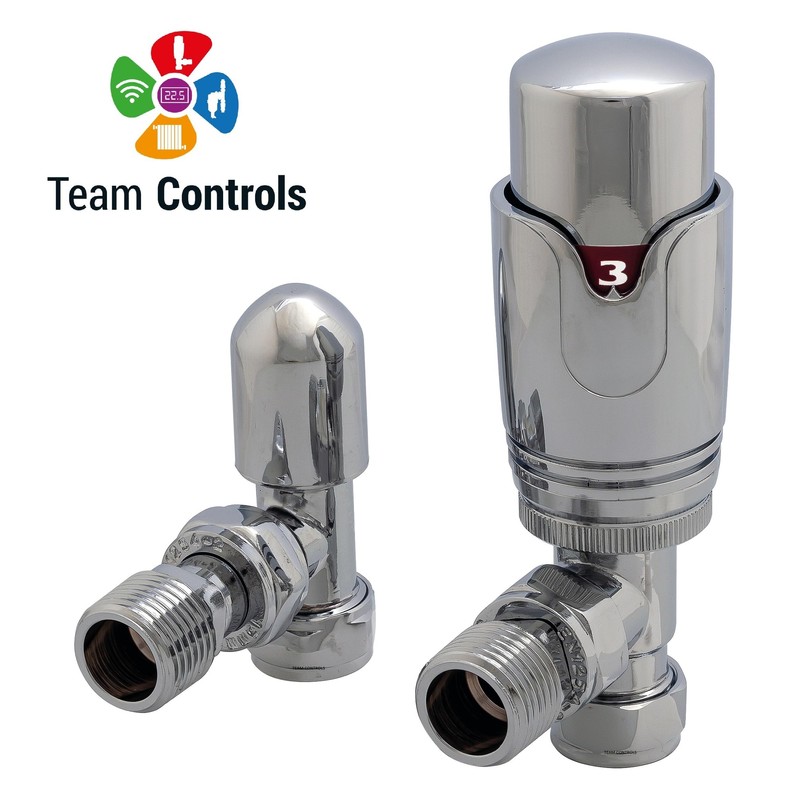 Team Controls Angled Thermostatic Radiator Valve TRV & Lockshield 15mm x 1/2'' Chrome Pack