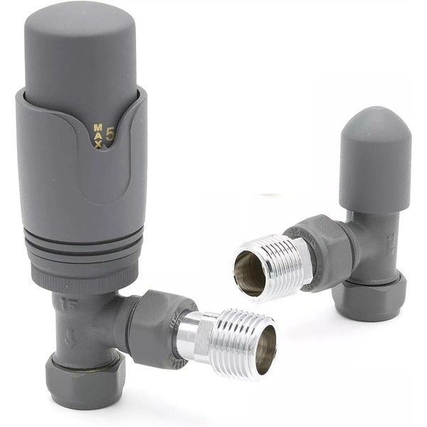 Team Controls Anthracite Grey Angled TRV Thermostatic Radiator Valve & Lockshield 15mm Pack Set Pair