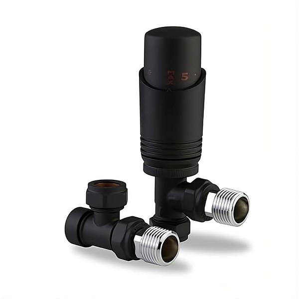 Team Controls Matt Black Angled Thermostatic TRV Radiator Valve & Lockshield 15mm x 1/2" Pack