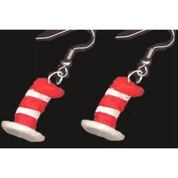 Team-Zebra Funky Earrings & Novelty Jewelry Funky Striped CAT-in-the-HAT EARRINGS Dr Seuss Novelty Charm Fun Costume Jewelry