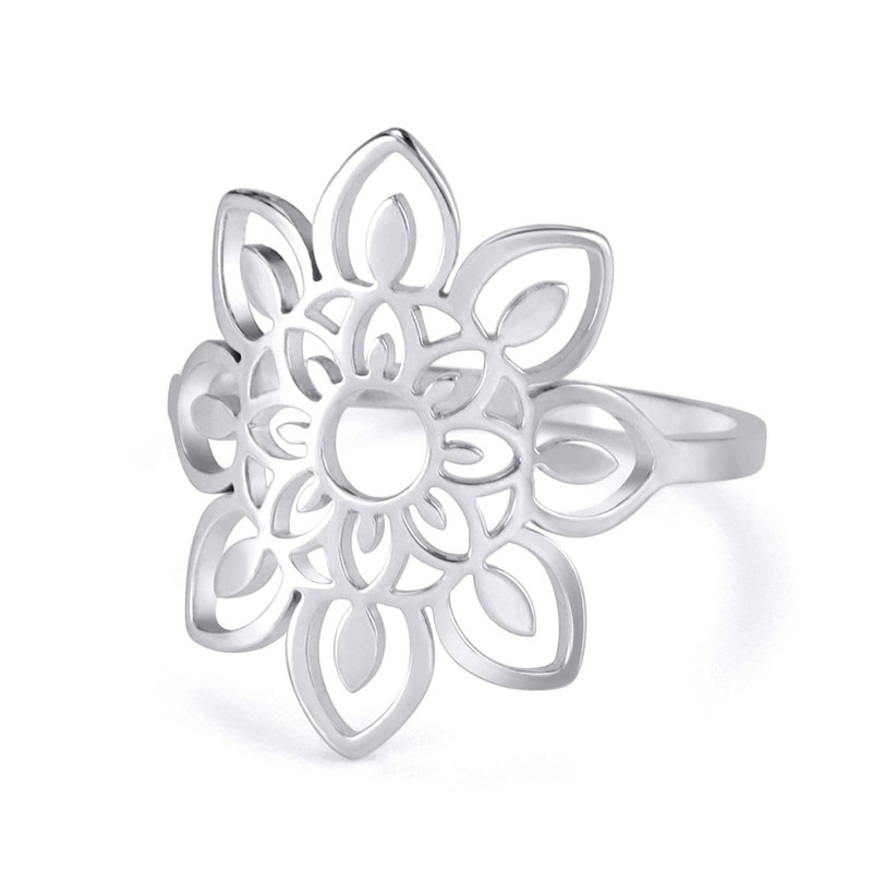 TEAMER Lotus Ring Stainless Steel Hollow Lotus Ring Geometric Ring Simple Jewelry for Women, Stainless Steel, unknow