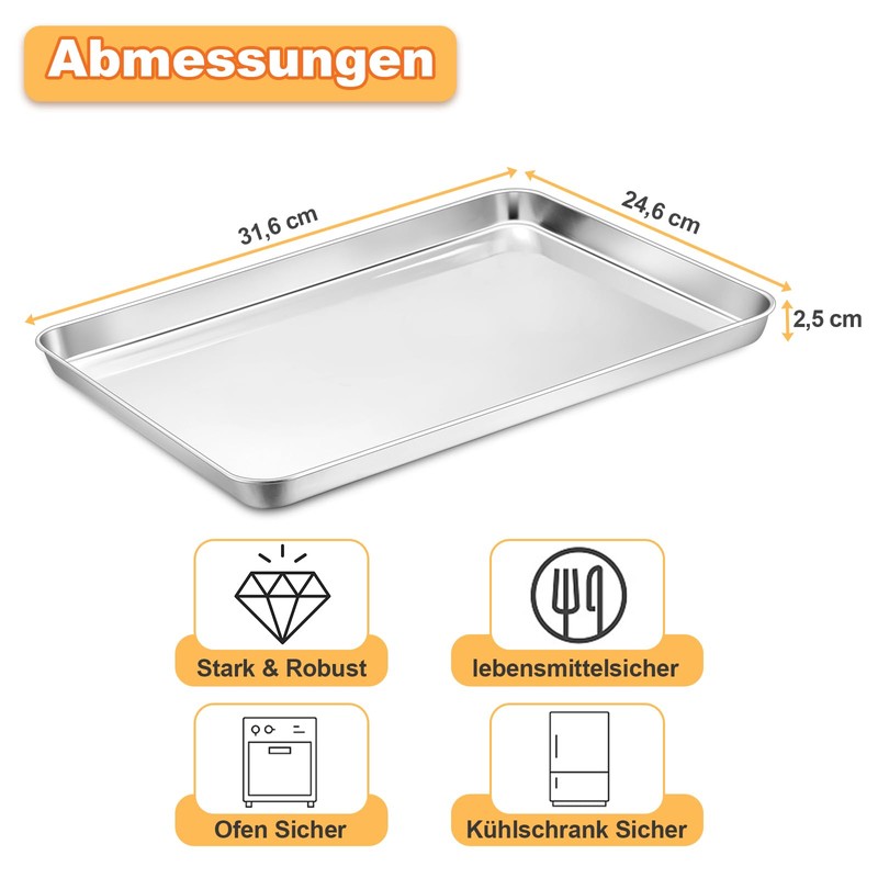 - Keep clean - Thanks to the deep, rounded sides of the stainless steel baking tray, you can hold more food and prevent liquid from flowing anywhere. Keep your oven clean