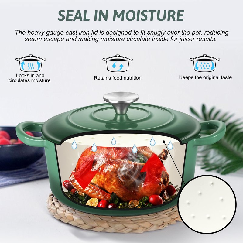 - Good Heat Distribution - The dutch oven crafted with premium cast iron core ensures exceptional heat distribution and retention, Providing even cooked results and better maintaining temperature for delicious and warmer meals