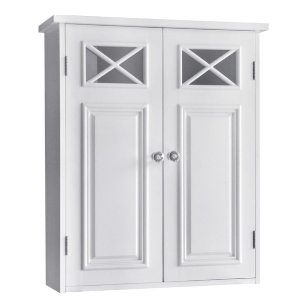 Teamson Home Dawson Wooden Over The Toilet Bathroom Removable Wall Medicine Cabinet with 1 Adjustable Shelf 2 Storage Spaces 2 Cross Molding Doors and Crystal-Cut Knobs, White
