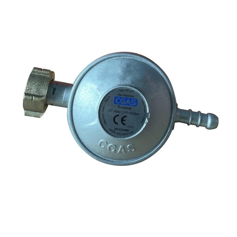 - COMPATIBILITY Suitable for propane gas cylinders up to 13kg, this G2-27mm gas connection kit features a holder with hose. It will automatically adjust the gas pressure to adjust the gas flow of 37 mbar of your barbecue, patio heaters or gas fire bowls. It maintains a constant output pressure.