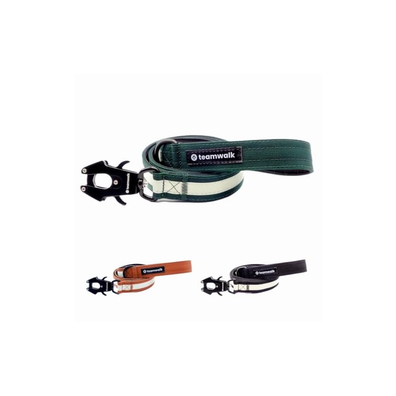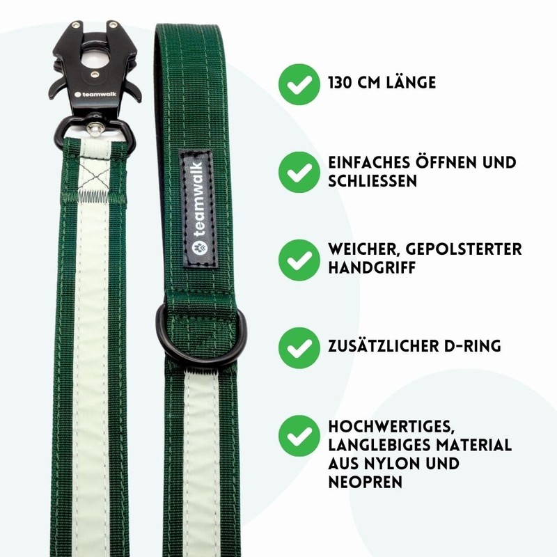 teamwalk® Premium Dog Lead with Luminous Strips, Soft Padding, Robust Buckle, (Forest Green, 130 cm)