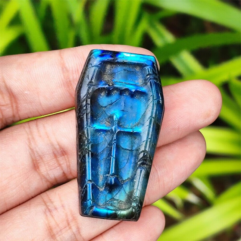 - The Labradorite coffin carving is not only a work of art, but also a gift of rich connotation and religious significance. It can be used as your personal collection, or be given to your friend or family member to convey your blessing and care.