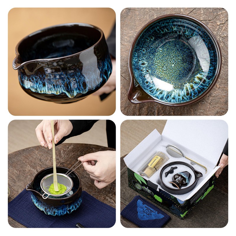 • 7-PCS MATCHA WHISK SET: 1*Ceramic Bowl whith Spout(chawan) 510 Ml/18 Oz, 1*Bamboo Whisk, 1*Bamboo Scoop (chashaku), 1*Cermaic Whisk Holder, 1*Ceramic Scoop Stand, 1*Cotton Tea Cloth (chakin), 1*Matcha Powder Sifter.Includes All Accessories