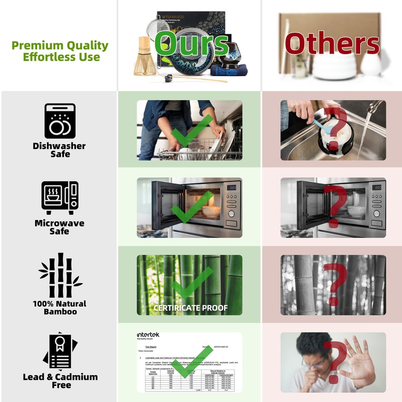 - HIGH SAFETY & QUALITY: Our Handcraft Matcha Whisk, About 100 Fine Tines(),100% Crafted From High Quality Bamboo With A Vegetable Oil Finish To Enhance Its Durability. Additionally, Our Ceramic Bowl Has Lead-free And Mercury-free Test Reports.food-grade And Eco-friendly