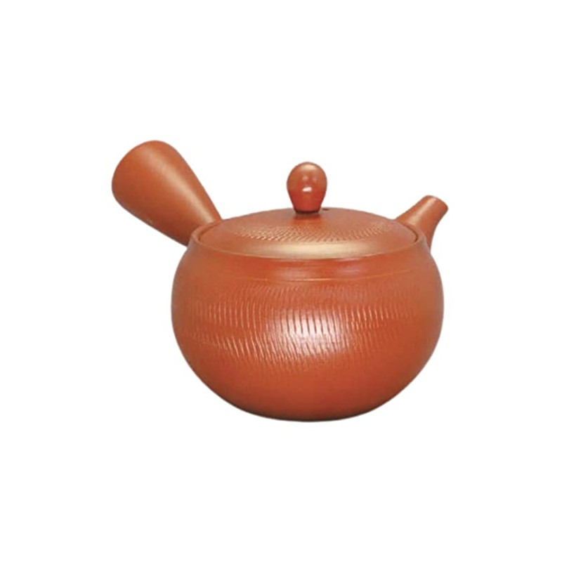 Teapot Kyusu Tokoname - Akira - Orange - 11 oz (330 ml/cc) - Stainless Mesh - Almond Shaped