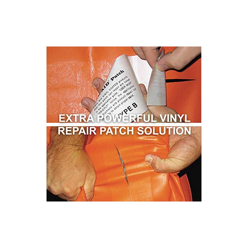 - The TEAR-AID Type B vinyl repair patch sticks to - Vinyl and Vinyl-coated material ONLY. Vinyl has oils that are absorbed by most adhesives which causes the adhesive to turn gooey, gummy, and ultimately lose bond. Tear-Aid vinyl repair patches contain an inhibitor that blocks the oils found in vinyl resulting in a long lasting repair