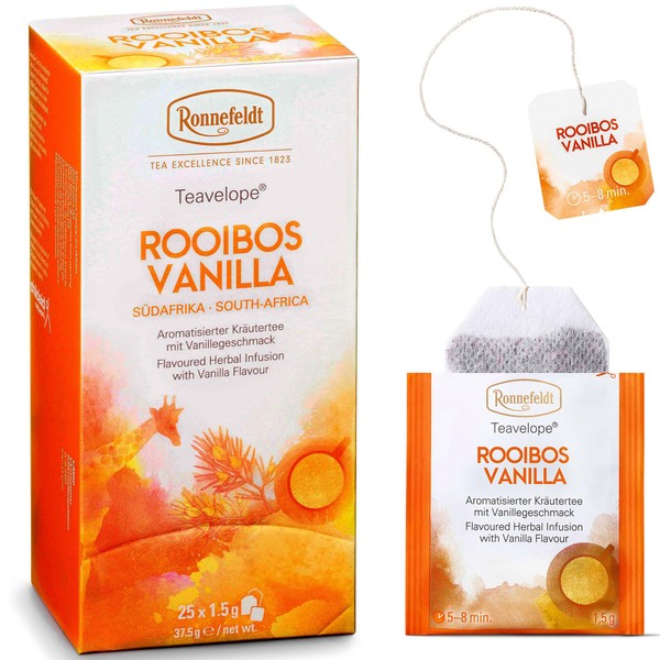 Ronnefeldt Teavelope Rooibos Vanilla Chai – Naturally Caffeine-Free South African Red Herbal Tea with Natural Orange & Vanilla Flavor – 25 Individually Wrapped Tea Bags
