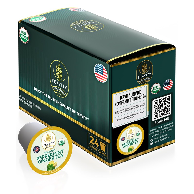 - Organic Ginger Tea Pods for Keurig with Organic Peppermint Tea - Naturally Decaffeinated Peppermint and Ginger Tea. is a soothing cup of tea that combines the warming spice of ginger with the coolness of peppermint, perfect for a moment of relaxation.