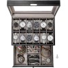 Tebery 12 Slot Watch Box Case Lockable with Glass Lid, 2 Layers Black
