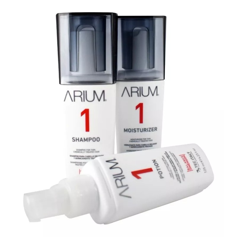 KIT ARIUM 01: SISTEMA EN TRES PASOS PARA CUERO CABELLUDO Y CABELLO QUÍMICAMENTE TRATADO Y DELGADO.