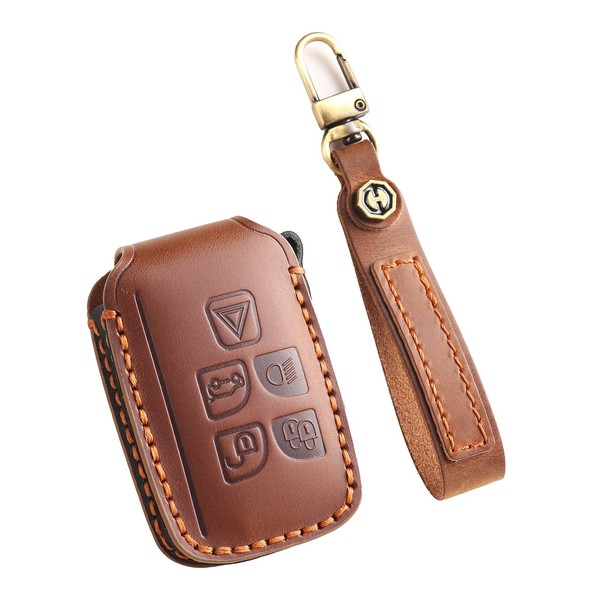 TECART Car Key Top Key Case for L-and Rover R-Ange Rover Evoque Velar SportDiscovery 4 Freelander, Key Shell Fits Jaguar XF XJ XE XJL Key Fob 5 Buttons, brown