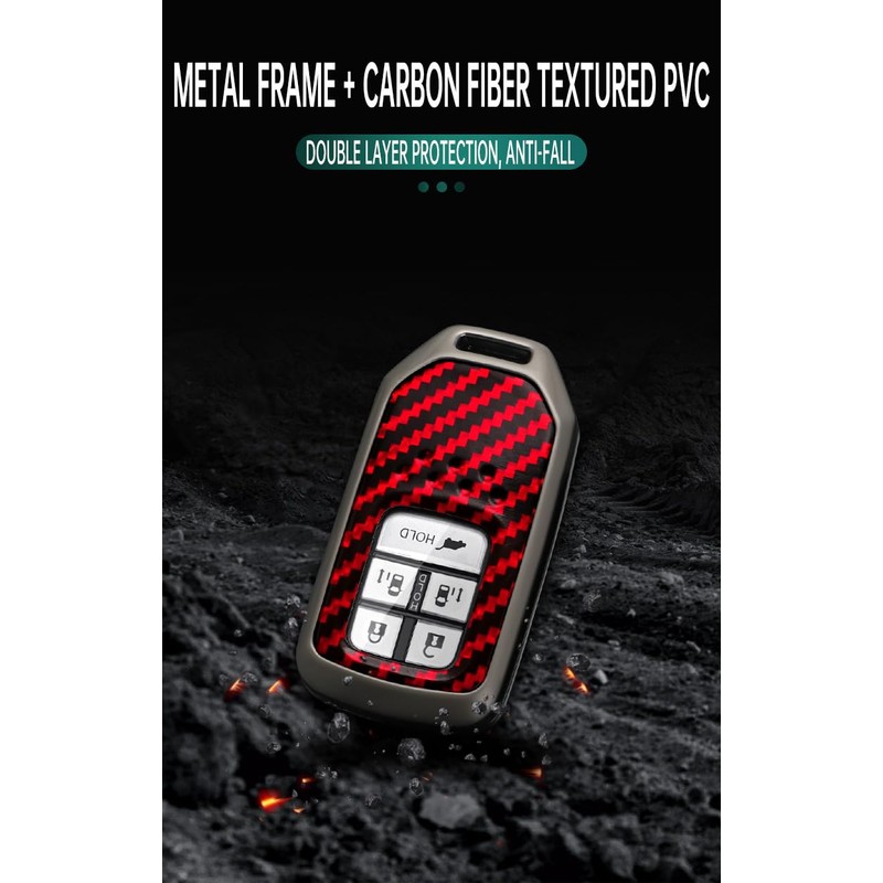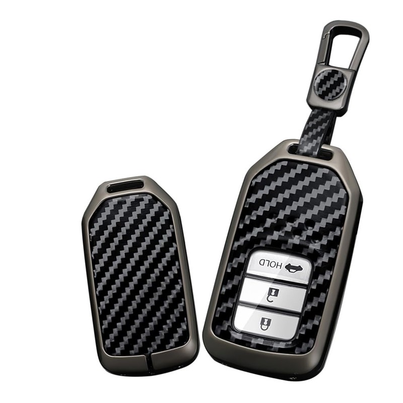 TECART Carbon Pattern Key Fob Cover Fit for Honda Accord Remote Metal Key Holder Full Protection 2/3/4/5/6 Buttons Black