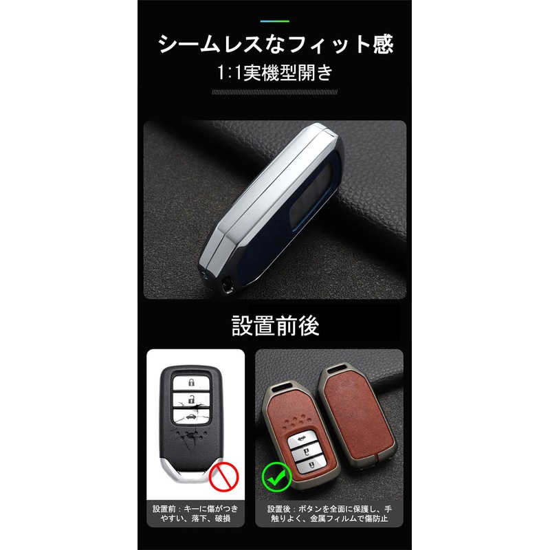 - (High Quality Material) This key case is made of high-quality aluminum alloy and PVC leather material, and has a metallic luster and texture of PVC leather. These make the key case look more luxurious. Also, the key case is comfortable, waterproof and dustproof, fit perfectly with your car smart key, more durable and protect your key from impacts