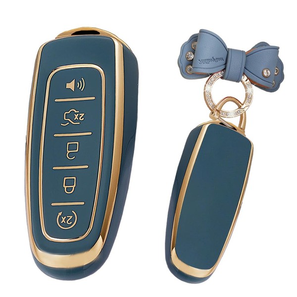 TECART Key Case Fit for Ford Edge Explorer Soft TPU Key Fob Keychain Key Shell Box Accessories Protector 5 Button Grey B, B Button-Grey, 5 Button