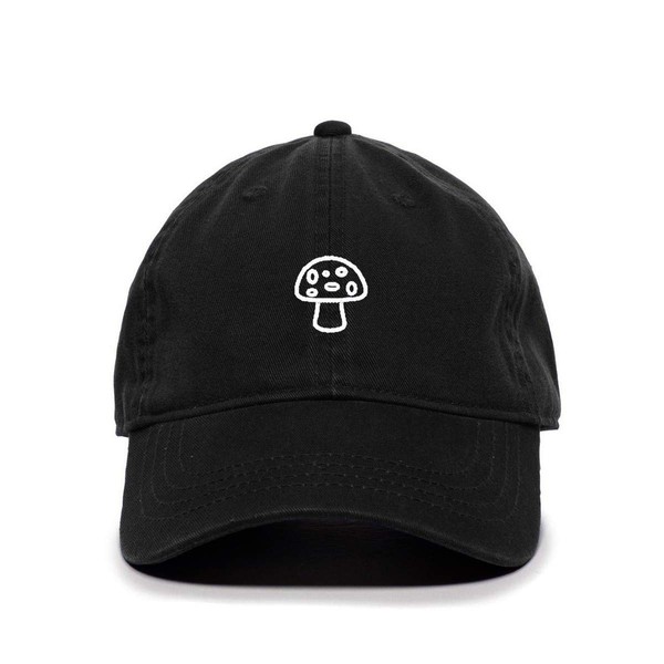 Tech Design Mushroom Baseball Cap Embroidered Cotton Adjustable Dad Hat Black