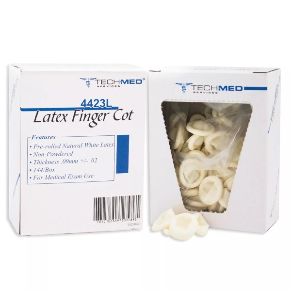 Tech-Med Pre-Rolled Natural White Latex Finger Cots Large Disposable 144/Bx