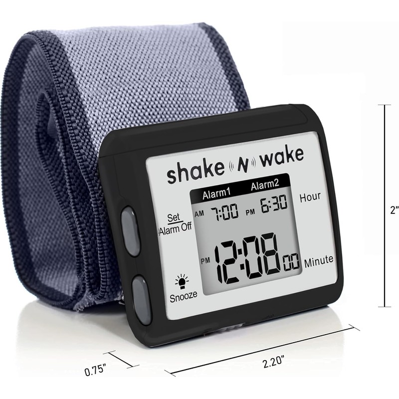 Whether you're looking to wake up without disturbing a partner or are hard of hearing and tired of sleeping through audible alarms, the Shake n Wake Vibrating alarm Clock is there to help. This Shake n Wake is a silent, wearable vibrating alarm watch that will vibrate to rouse you instead of playing any sounds. It is lightweight and comfortable, meaning it won't feel bulky and irritating when you wear it to sleep, and could be used as a travel alarm clock, You can also choose to detach it and place it beneath your pillow.