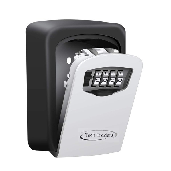 Tech Traders ® Key Lock Box,Wall Mounted Key Safe, Key Storage Box with Strong 4-Digit Combination to Share and Secure Keys for Home, Office Etc [Updated Version].