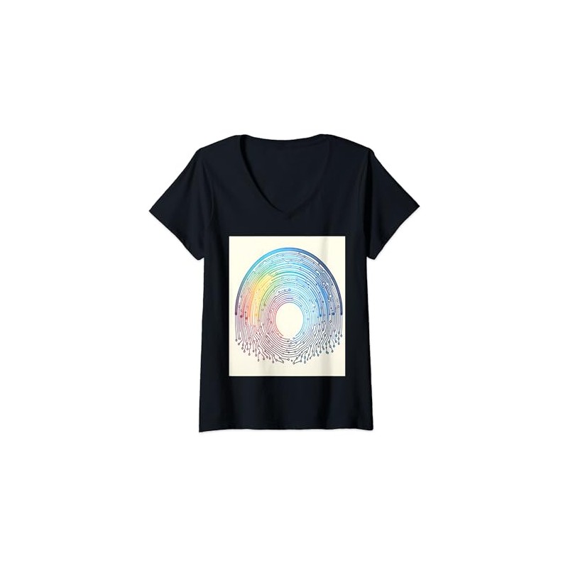 Tech Wireframe Rainbow Art V-Neck T-Shirt
