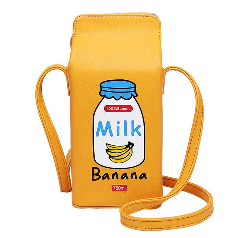 Techcircle Cute Milk Box Purse, PU Leather Crossbody Bag, 01 Yellow, Small