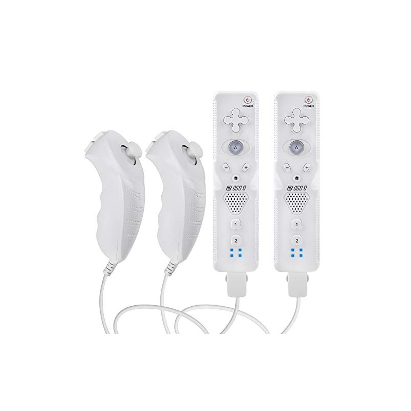 TechKen Wii Remote Controller (2 Sets) Include 2 Wii Remote and Build-in Motion Sensor Plus and 2 Nunchuck (2 in 1)