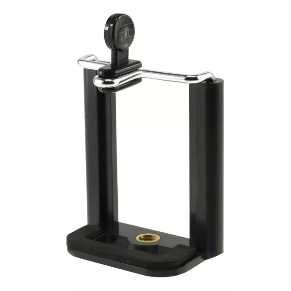 Les presentamos el adaptador soporte clip para teléfonos celulares y cámaras pequeñas este adaptador cuenta con los extremos acolchonados y una ranura universal de 1/4 de pulgada para colocar en un tripié o en una base con esta medida puedes colocar celulares o cámaras de 5.5-8.5 centímetros gracias a sus brazos metálicos que abren hasta ese tamaño de una manera fija y segura para tu celular o cámara. Ideal para cambiar de dispositivos rápidamente Y de forma segura para celulares iPhone Samsung HTC Sony LG etcétera.