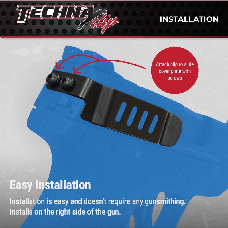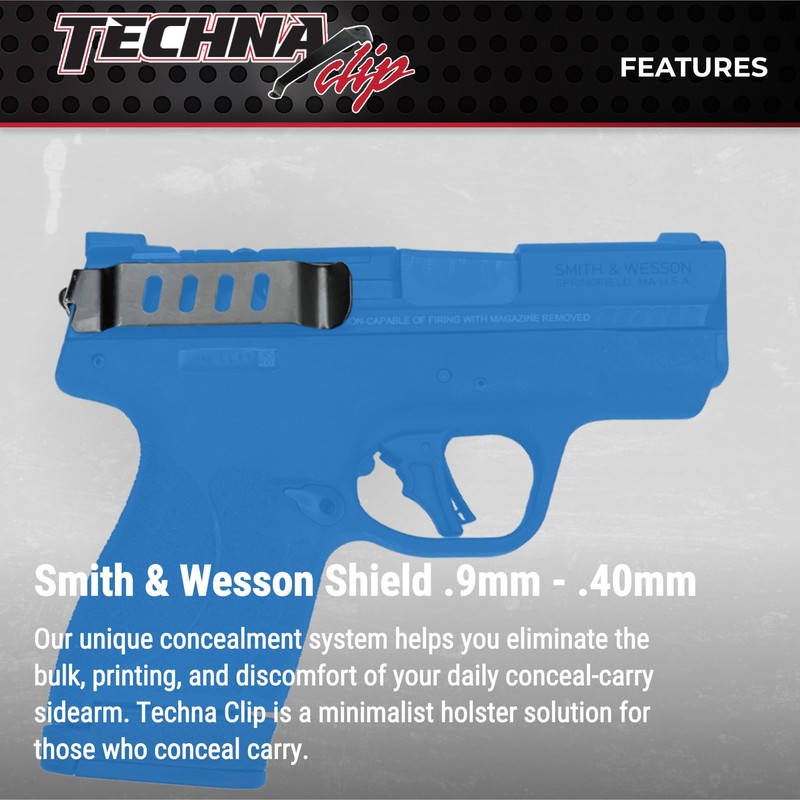 Techna Clip Concealment System for Smith & Wesson Shield (9mm & .40) - Durable High-Carbon Spring Steel Gun Clip w/Teflon Coating - Right-Side Carry, Easy-to-Install Glock Clip (Black)