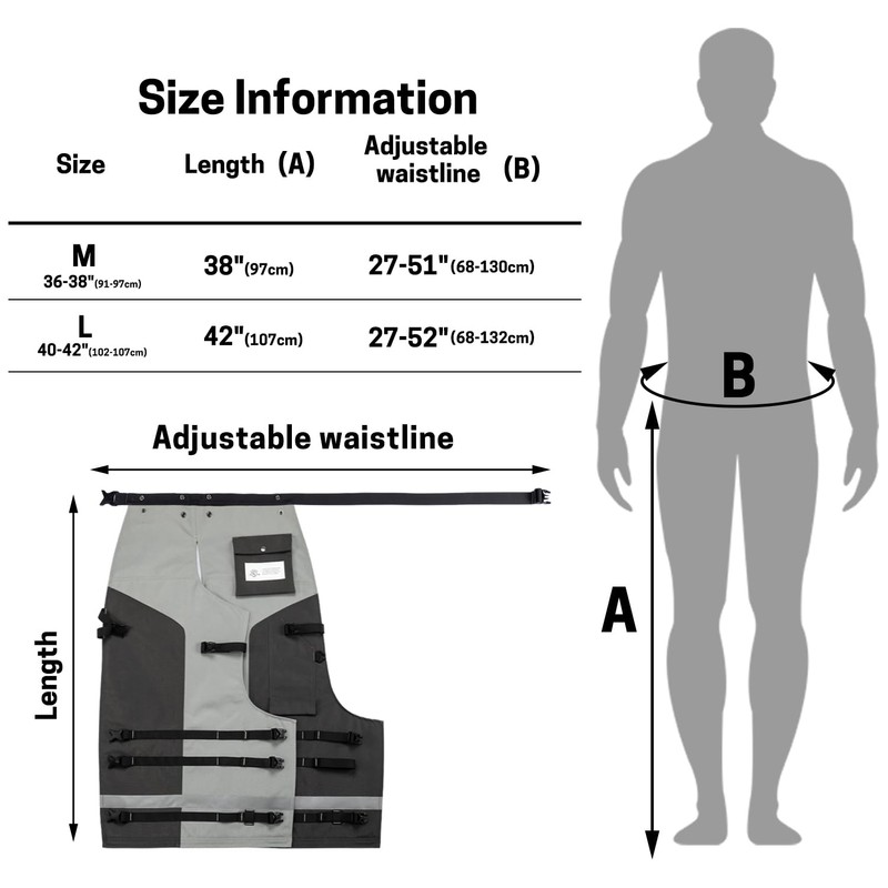 [Updated Standard and Size Options] Each of chainsaw chaps meets the newest standard of 2020 year(NOT 2014).Two optional sizes for loggers and foresters, 40-42 inch(Large)and 36-38 inch(Medium),Fixed most men and women.