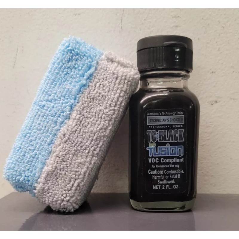 TECHNICIAN'S CHOICE TEC70 BLACK FUSION. With our Brand New Microfiber Applicator included. Restores faded plastic & protects against acid rain, sun damage, chalking & detergents. Last 1 yr. Or longer. Used on BLACK or GRAY plastics. Checkout great informative videos from Technicians Choice on YouTube. Especially their how to videos.